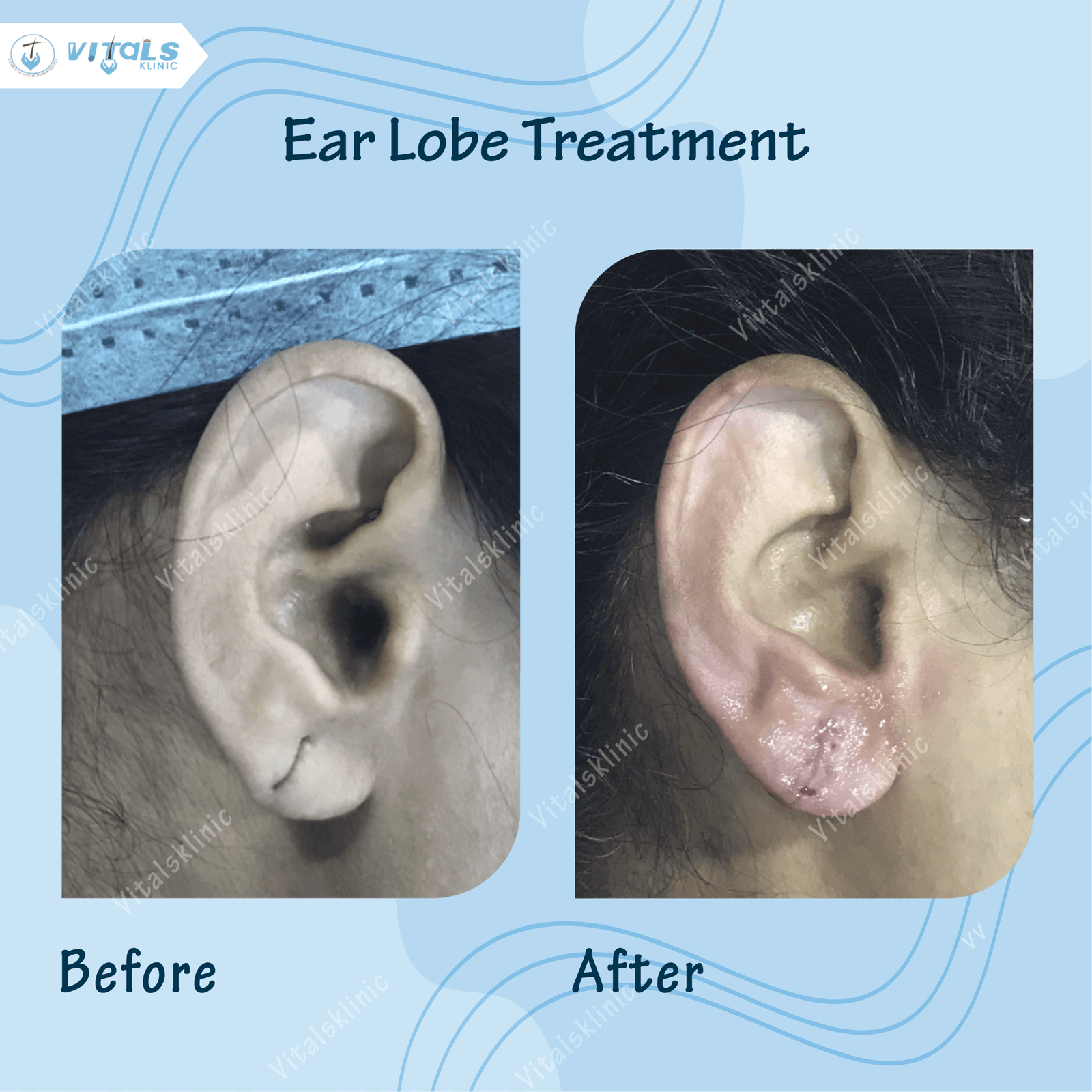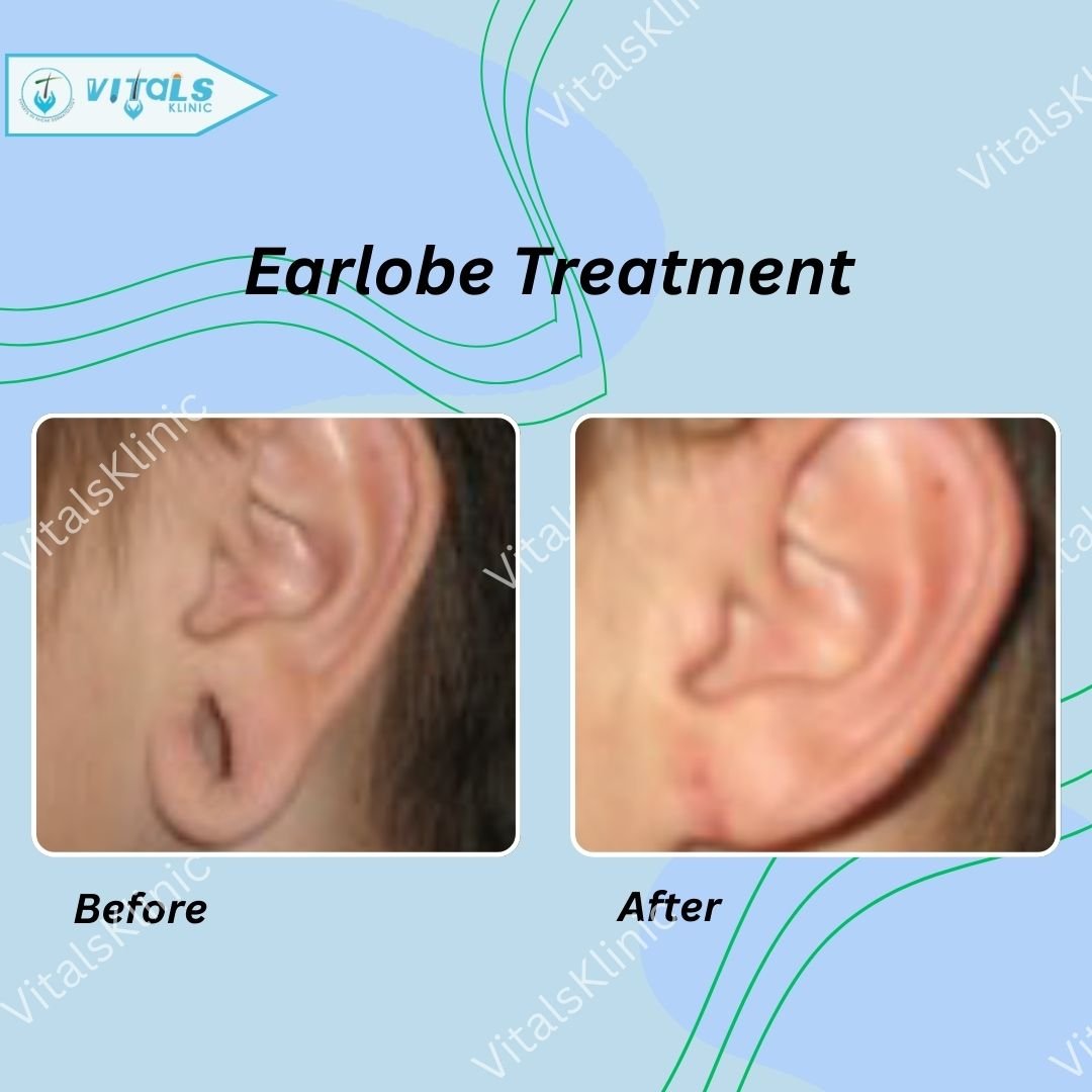 Earlobe repair surgery in Bangalore is a specialized cosmetic procedure designed to correct stretched, torn, or damaged earlobes caused by heavy earrings, trauma, gauges, or aging. At Vitals Klinic, our expert dermatologists and cosmetic surgeons perform safe and effective earlobe repair surgery in Bangalore using advanced techniques that restore natural shape and symmetry with minimal scarring and quick recovery.